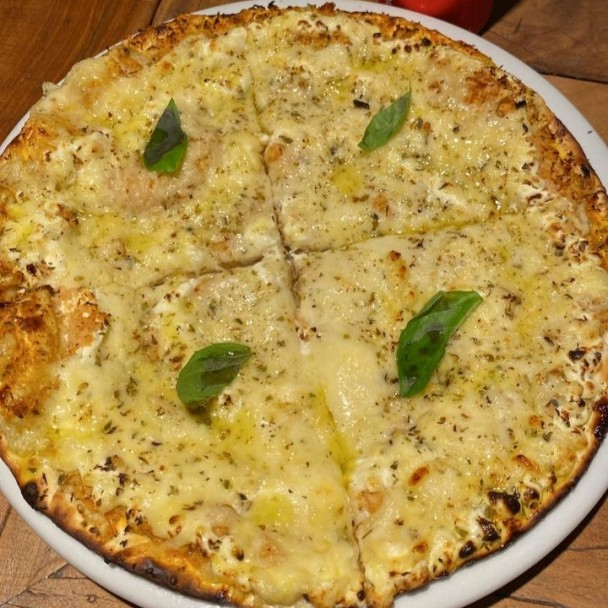 Pizza média composta por 4 fatias sabor único de frango com cream cheese + uma guaraná antarctica 269ml, massa, molho especial da casa, mozarela, frango desfiado, cream cheese finalizada com oregano e manjericão fresco.